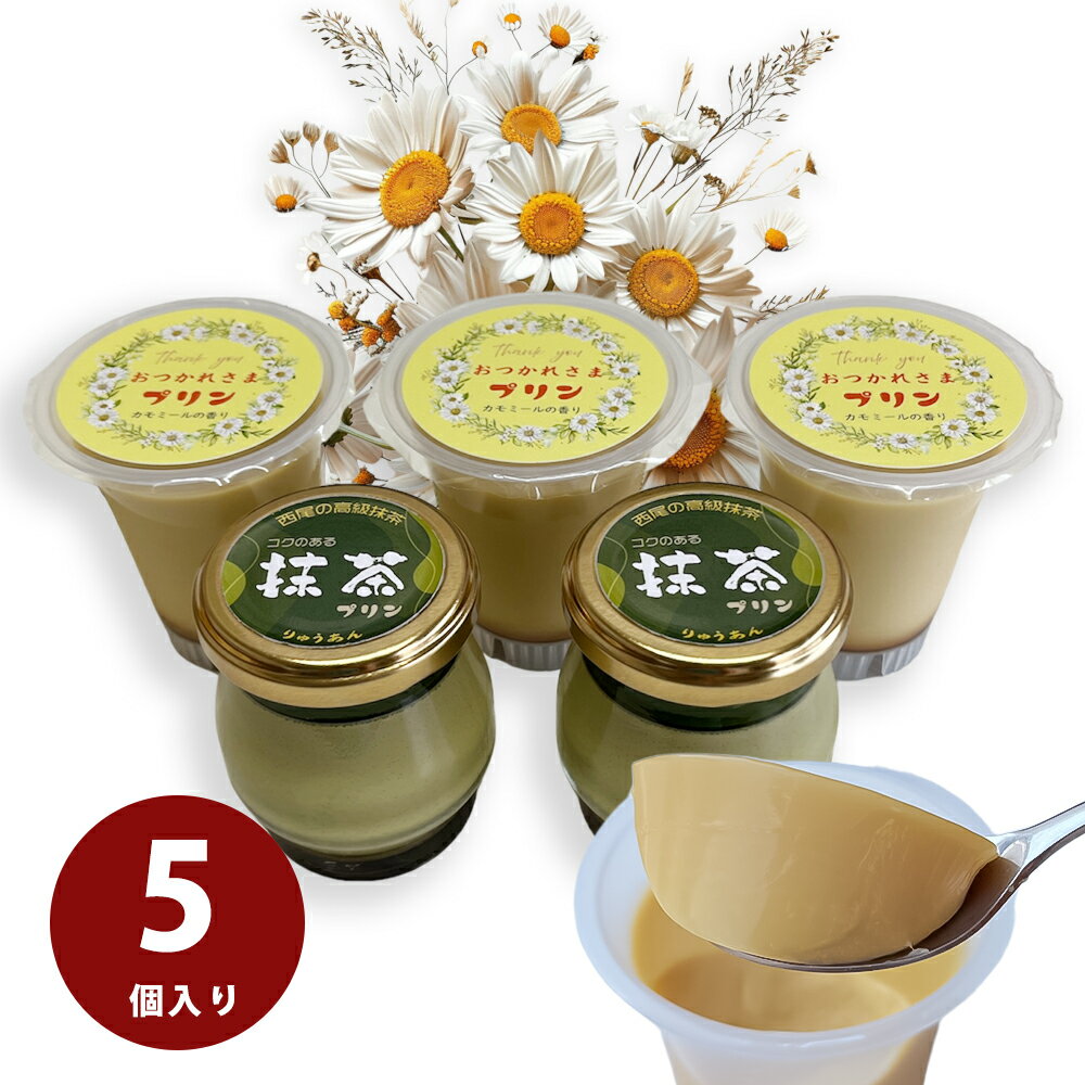 無添加プリン(おつかれさまプリン) お取り寄せ オーガニックカモミールとてんさい糖を使った体にも心にも優しいプリンと高級プリンのセット 内祝い ギフトで人気のグルテンフリースイーツプリン(簡易箱セット5個入)【抹茶プリン(ビン)×2個 おつかれまさプリン(カップ)×3個入 1箱】無添加プリン オーガニックカモミールとてんさい糖でつくる優しいプリン 抹茶プリン 名古屋発のお取り寄せスイーツ 【sb-pp2-otu3】