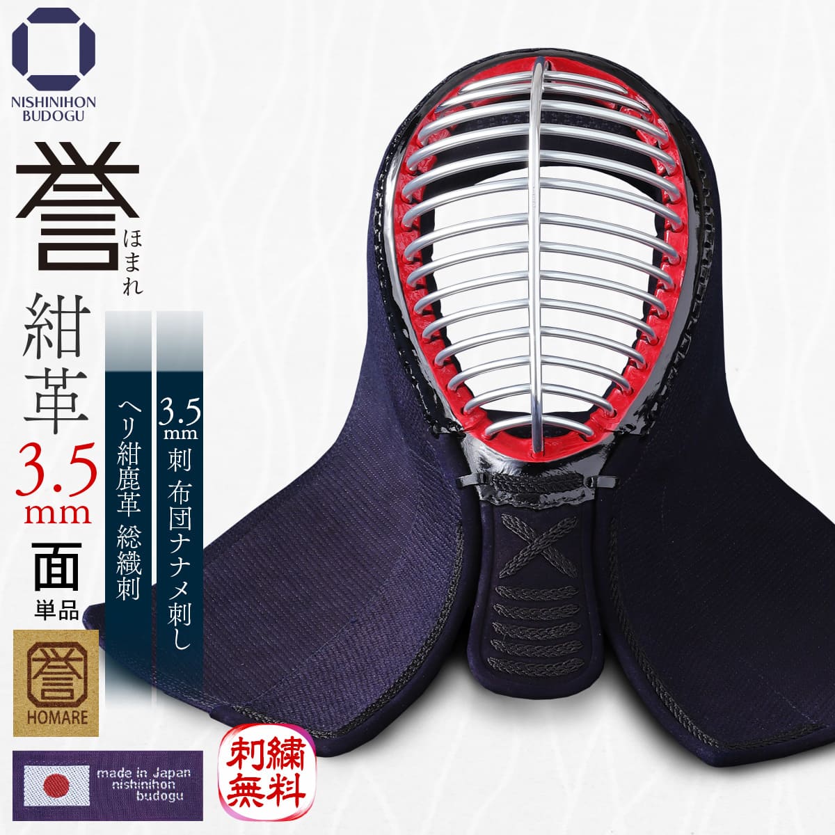 剣道 防具 日本製 武州正藍染 布団ナナメ刺し ヘリ紺鹿革 総織刺剣道 防具(面単品)武州正藍染 日本製 誉 - HOMARE- 紺革 3.5ミリ 刺