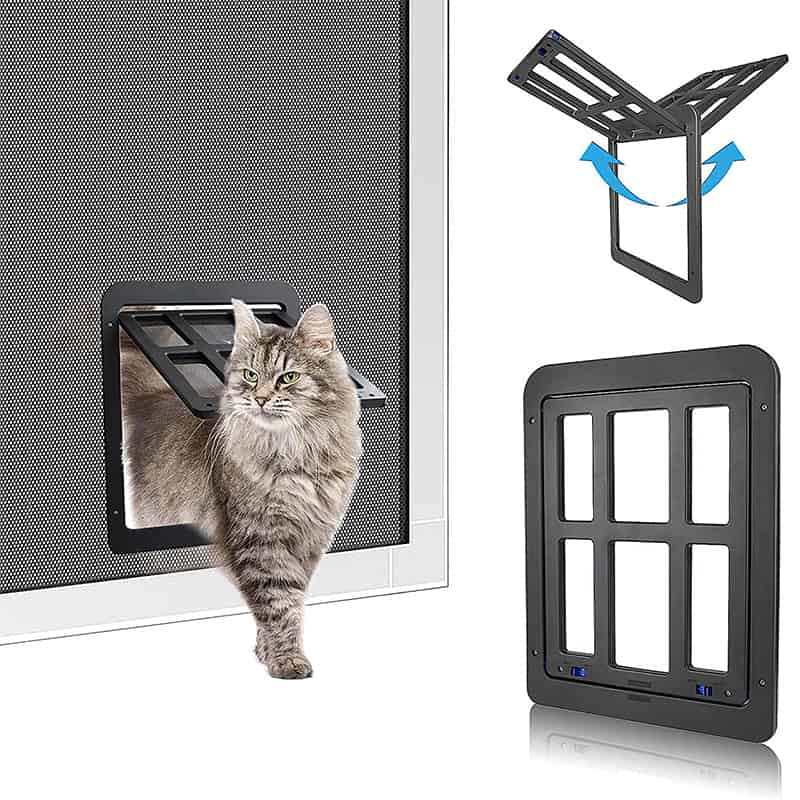ペットドア【PT10倍+10%OFFクーポン】猫ドア ペット用網戸ドア 網戸用ドア 猫用自由に出入の口 ロック可能取付簡単の猫 小型犬用ペットドア (猫 小型犬用) 父の日