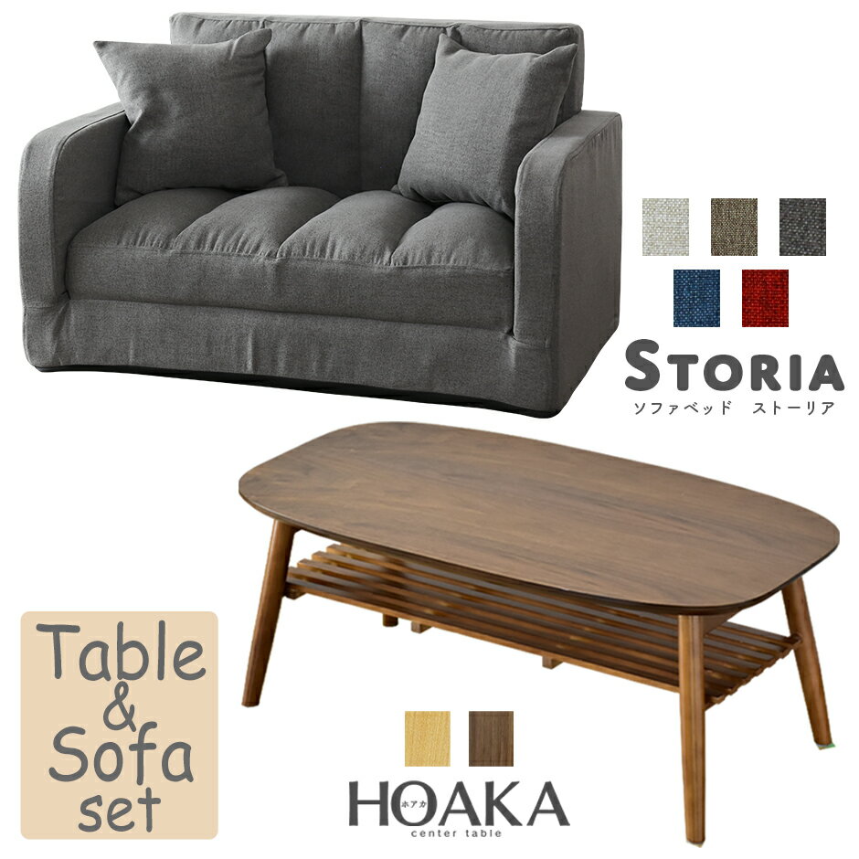 ソファベッド センターテーブル セット ソファ テーブル 2人掛けソファベッド センターテーブル セット ソファ ベッド ローソファ 折りたたみ テーブル ローテーブル 2人掛け 木製 棚付き 一人暮らし 北欧 ストーリア ホアカ