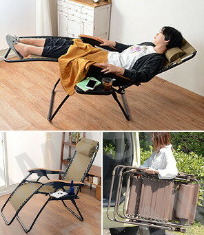 通気性の良いメッシュ素材を採用!取り外せるマット付きで年中使える!折りたためて アウトドアにもオススメ!従来版から更にレベルアップした快適性と機能性!◆左右どちらにも装着できるサイドテーブルが付属!ドリンクや小物を置いて快適なお家時間を!◆お洒落な木目調のひじ掛けで気分もアップ!どんなお部屋デザインにも良く馴染みます。◆シートの生地には丈夫で通気性に優れたポリエステル製メッシュ生地を採用。◆メッシュ素材により通気性抜群!でも冬はちょっと寒い・・・ そんなお客様の声にお応えして、簡単に着脱が可能なカバーをセットしました!◆着脱できる枕付き!有でも無しでも快適♪その日の気分でお使いください。◆フレームにバンジーコードでくくりつけてある仕様の為、 シートがハンモックのように優しく身体を支えてくれます。◆リクライニング機能が付いており、座った状態で後ろへ徐々に体重をかけながら、 お好みの角度になったらひじ掛け下の安全ロックを入れて固定が出来ます。◆組立不要で、使わない時は折りたたんで収納ができます!◆持ち運びにも便利で、ご自宅用だけでなく、キャンプや屋外レジャー用としてお使い頂くのも オススメです!商品名:サイドテーブル付リクライニングチェアーサイズ:使用時:(約)幅60X奥行82~147X高さ75~100cm収納時:(約)幅60X奥行12X高さ79cm重さ:チェアー:(約)7.2k g(カバー、枕を含む)サイドテーブル:280g(約)耐荷重:チェアー:100k gサイドテーブル:1k g材質:メッシュ部分:ポリエステルカバー:ポリエステル、綿枕部分:スポンジパイプ:スチールひじ掛け、 滑り止め部分:PPゴム:ポリエステル、ラテックス金具:鉄生産国:中国【代引きについて】こちらの商品は、代引きでの出荷は受け付けておりません。【送料について】北海道、沖縄、離島は送料を頂きます。