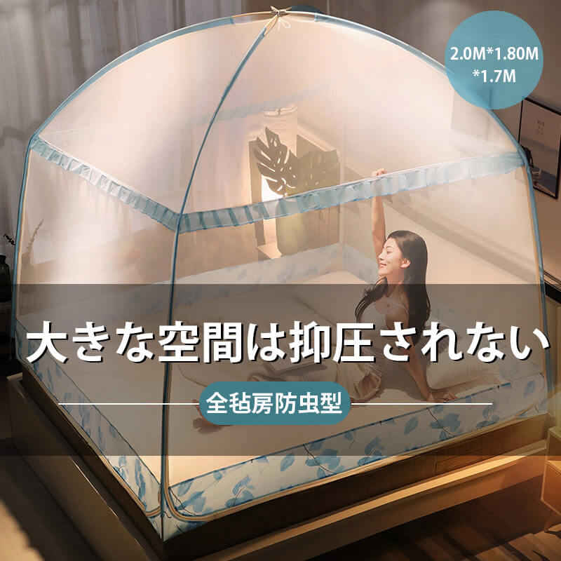 【カラー】10色【サイズ】120×200×高160cm 150×200×高160cm 180×200×高160cm 180×220×高160cm 200×220×高160cm【全保護型】密度が高いメッシュ 底部は虫刺され防止の布がつきますので 睡眠の時 蚊帳の端に触れても大丈夫です。蚊帳を使えば窓を開けておいても虫さされの心配がないので エアコンの風が苦手な方にもオススメです。【ワンタッチ式】テントのようにパッと広がるワンタッチ式なので設置もらくらく簡単です。目の細かいネットで小さな蚊も通しません。耳元で聞こえる羽音に気を立てることなく 朝までぐっすり安心して眠れます。【折りたたみ式】折りたたむと非常にコンパクトになり薄くなりますので収納場所にも困りません 持ち運びにも便利です。【使い便利】三面三つドアタイプ ファスナーで開閉し 快適な空間を作ることができます。キャンプなどアウトドアでも活躍します。※サイズ表記は目安です。誤差はご了承ください。※商品は縫製上の細かいほつれ 汚れ 素材特有の臭いや接着剤等の臭いが残っている場合がございますので【カラー】10色【サイズ】120×200×高160cm 150×200×高160cm 180×200×高160cm 180×220×高160cm 200×220×高160cm【全保護型】密度が高いメッシュ 底部は虫刺され防止の布がつきますので 睡眠の時 蚊帳の端に触れても大丈夫です。蚊帳を使えば窓を開けておいても虫さされの心配がないので エアコンの風が苦手な方にもオススメです。【ワンタッチ式】テントのようにパッと広がるワンタッチ式なので設置もらくらく簡単です。目の細かいネットで小さな蚊も通しません。耳元で聞こえる羽音に気を立てることなく 朝までぐっすり安心して眠れます。【折りたたみ式】折りたたむと非常にコンパクトになり薄くなりますので収納場所にも困りません 持ち運びにも便利です。【使い便利】三面三つドアタイプ ファスナーで開閉し 快適な空間を作ることができます。キャンプなどアウトドアでも活躍します。※サイズ表記は目安です。誤差はご了承ください。※商品は縫製上の細かいほつれ 汚れ 素材特有の臭いや接着剤等の臭いが残っている場合がございますので