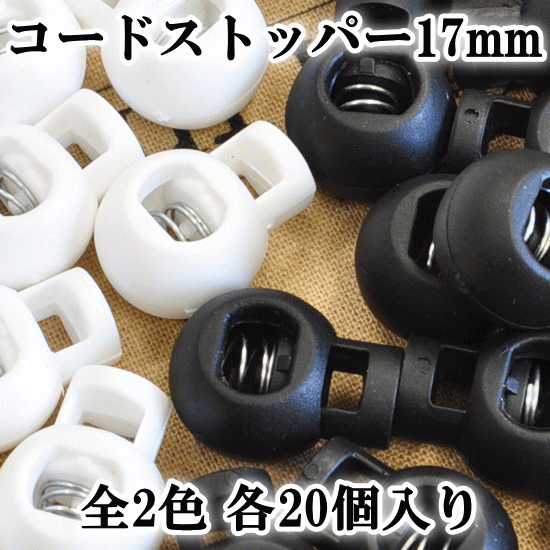 たっぷり20個 紐止め、スウェードや本革紐、スピンドル紐…用途多様です。#ゆうパケ9点可コードストッパー 17ミリ20個 全2色 ■ コードストッパー 紐 止め 紐止め ■
