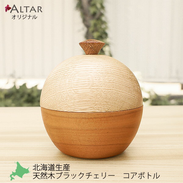 北海道のクラフト職人が手作業で木を丸く削って作ったコアボトルコアボトル 骨つぼ 骨壺 幅7.4cm 高さ7.5cm 天然木ナラ材 ブラックチェリー 手元供養 職人 手作り 北海道 クラフト 木製 無垢 日本製 国産 オリジナル 職人 仏具 現代仏具 モダン仏具 現代仏壇 家具調仏壇 アルタ ALTAR