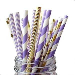 IPALMAY パープルとゴールドの生分解性紙ストロー、ストライプポルカドットシェブロン、7.75インチ、150本パック IPALMAY Purple and Gold Biodegradable Drinking Paper Straws, Striped Polka Dot Chevron, 7.75 Inches, Pack of 150