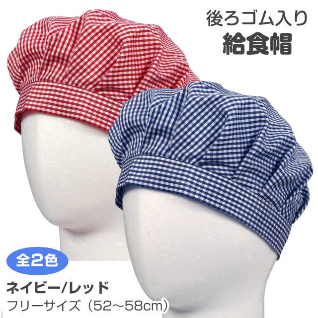 給食帽 子供用 後ろゴム 幼稚園 保育園 学校 おしゃれ 男女兼用給食 帽子 給食着 子供 キッズ 男の子 女の子 ギンガムチェック ゴム入り☆全2色