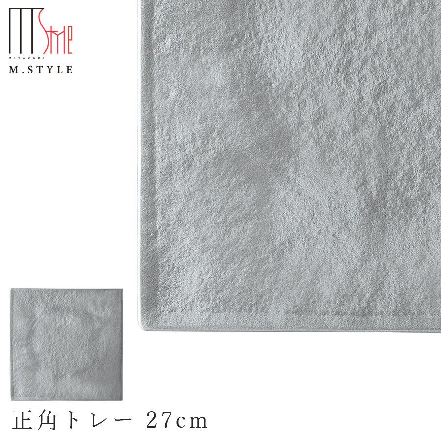 高級食器 M.STYLE ミヤザキ食器 モダンでオシャレな おもてなしの食器。 業務用 大量注文も承ります。【漆石(うるし) 正角トレー 27cm/瑞雲(シルバー)】スクエア お皿 銀色 美濃焼き 陶器 焼き物 日本製 和食器 洋食器 ディナー 高級食器 エムスタイル M.STYLE【ミヤザキ食器】【Silent-サイレント-】
