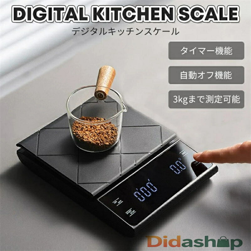 キッチンスケール コーヒースケール デジタルスケール 3kg タイマー機能付き 0.1g単位 おしゃれ シンプル はかり ドリップスケール コンパクト お菓子作りコーヒースケール キッチンスケール 充電式 電池式 デジタルスケール 3kg タイマー機能付き 0.1g単位 電子はかり コンパクト おしゃれ シンプル はかり ドリップスケール コンパクト お