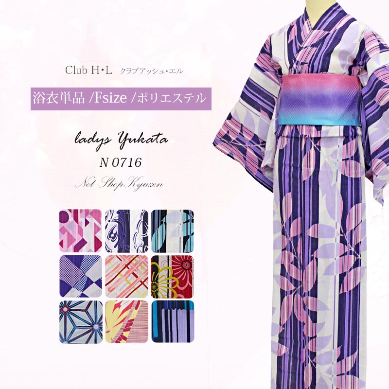 吸水速乾機能でドライな着心地の女性浴衣単品浴衣 レディース 単品 大人 ポリエステル100% Fサイズ フリーサイズ 女性 clubHL クラブアッシュエル カワイイ ゆかた 白 ピンク 赤 黄色 水色 青 紫 祭り 花火 フリー yukata 吸水速乾機能 ドライ 丸洗い