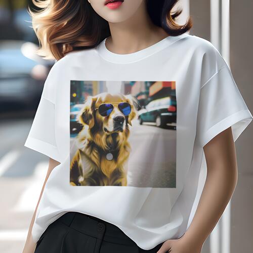 ダンス、スポーツ、アウトドアシーン、練習着にも!ゴールデンレトリバー Tシャツ 犬愛 ユニークデザインレディース 犬ファン 半袖 春夏 プリント カジュアル かわいい 人間用 ギフト 個性的 サングラス ゴールデンレトリバー 車 街