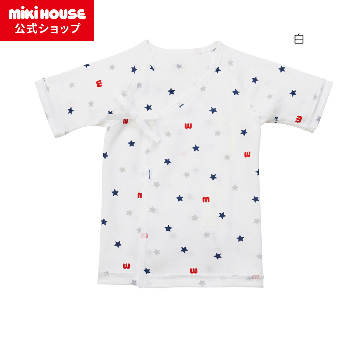 【ゆうパケット選択可】ミキハウス 星柄ガーゼ素材の短肌着【40-2180-267】01白 50・60cm通年用短肌着
