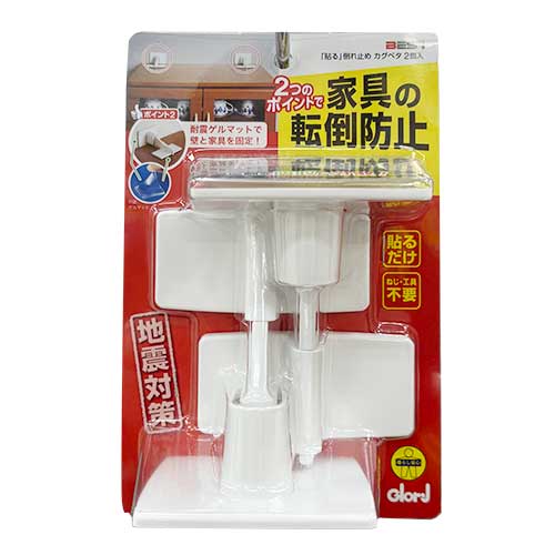 詳細説明【特長】・貼るだけ簡単!家具の転倒防止対策に!・本体内蔵のスプリングと耐震ゲルマットの2つの効果で、地震の振動を吸収します。【仕様】・壁面と家具の隙間が(約)8mm~50mmに対応・耐用年数(約):5年・使用温度範囲(約):-15℃~50℃・目安重量(約):60kg以下【使用方法】(1)壁面取付側のゲルマットの保護フィルムを剥がし、家具天板に沿って滑らせながら壁面に押し付けしっかり密着させます。(2)押さえプレートのゲルマットの保護フィルムを剥がしアームの凹部にセットし、押し付けながらしっかり密着させます。商品仕様(スペック)カラー:ホワイトパッケージサイズ(約):縦210×横135×厚65mm 素材:[本体]ABS樹脂[ゲルマット]イソブチレン樹脂家具の転倒防止対策に!
