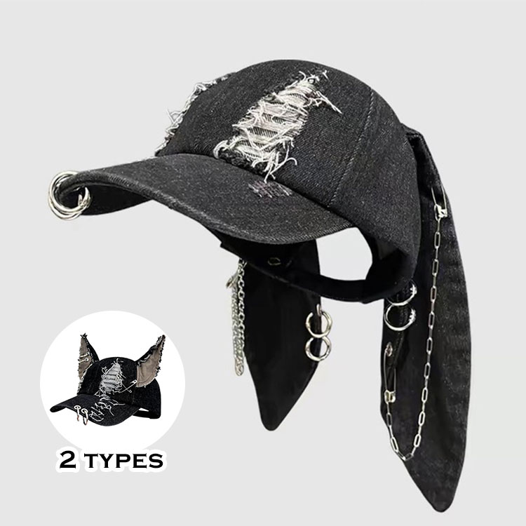 ウサミミ デニム キャップ 帽子 可愛い ギフト プレゼント カジュアル レディース 小顔効果 学生用 日焼け防止帽子 レディース ハロウィン衣装 キャップ 兎 デニム ダメージ加工 帽子 ウサ耳付き 学生 K-POP 帽子 狼耳 デニム メンズ チェーン キャップ y2k 可愛い おしゃれ かっこいい ダンス ガールズ ヒップホップ 小顔効果 送料無料