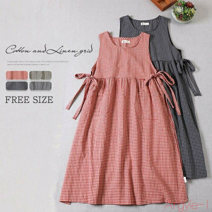ジャンパースカート チェック柄 ロング丈 ワンピース 綿麻風 春【送料無料】ワンピース ジャンパースカート チェック柄 ロング丈 綿麻風 春 夏 秋 かわいい ベストワンピース ポケット きれいめ リネンワンピース コットン レディース 綿