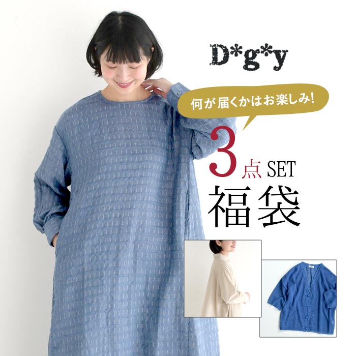 何が届くかはお楽しみ!D*g*yの福袋数量限定 お楽しみ福袋3点セット(b) 返品交換不可 D*g*y ワンピース カーディガン/ カジュアル ナチュラル dgy ディージーワイ sel, エコロコ レディース/ 大きいサイズ 春 夏 25SS0704,