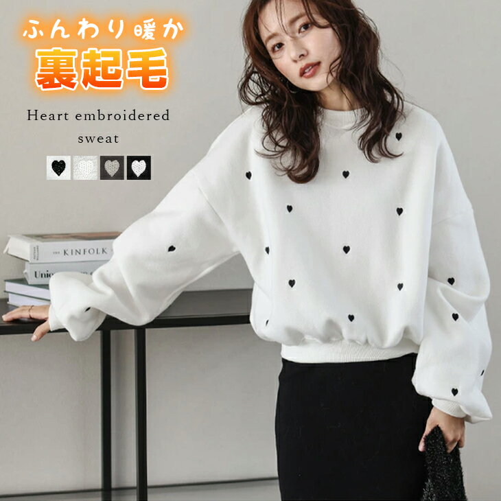 トップス スウェット プルオーバー ハート 刺繍 裏起毛 オーバーサイズ 大人可愛い【25AW×半額クーポン】トップス スウェット プルオーバー ハート 刺繍 裏起毛 オーバーサイズ 大人可愛い カジュアル レディース おすすめ おしゃれ 2025秋冬新作【lstpaw24-833】【即納&予約:(1)即納/(2)10月23日入荷予定順次発送】【送料無料】60込