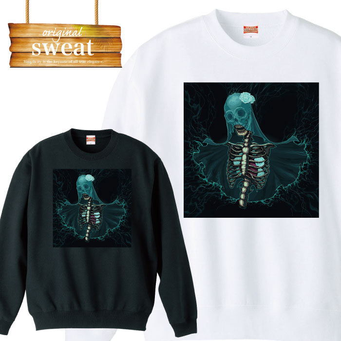 【スカルデザイン・プリントスウェットトレーナー 】スウェット トレーナー 長袖 スカル ドクロ 骸骨 ガイコツ パンク ロック オリジナル 男女兼用 メンズ レディース アパレル 秋冬 裏パイル生地 S M L XL XXL 大きいサイズ ビックシルエット