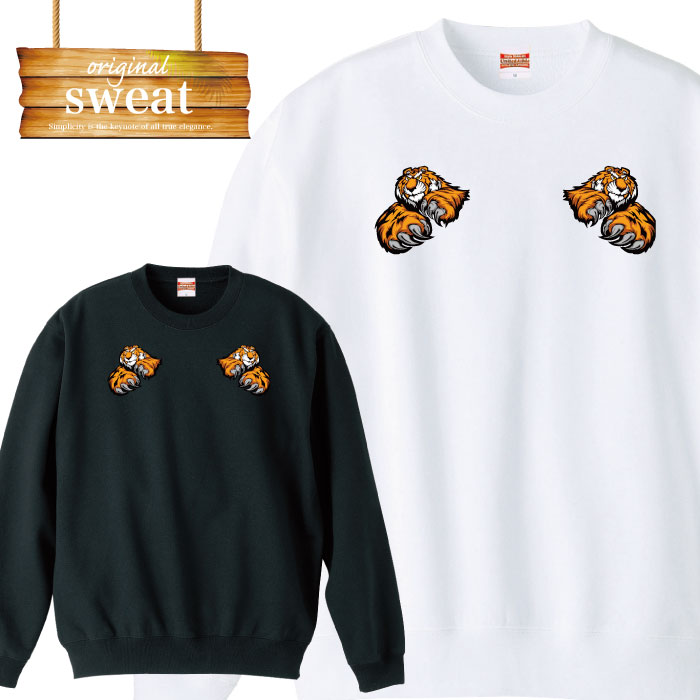 【タイガーデザイン・プリントスウェットトレーナー 】スウェット トレーナー 長袖 トラ タイガー 刺繍フェイク 可愛い cute キュート 動物 イラスト オリジナル 男女兼用 メンズ レディース アパレル 秋冬 裏パイル生地 S M L XL XXL 大きいサイズ