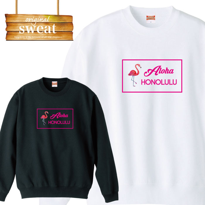 【alohaデザイン・プリントスウェットトレーナー 】スウェット トレーナー 長袖 フラミンゴ flamingo aloha アロハ ビーチ ハワイ hawaii beach オリジナル 男女兼用 メンズ レディース アパレル 秋冬 裏パイル生地 綿100% S M L XL XXL 大きいサイ