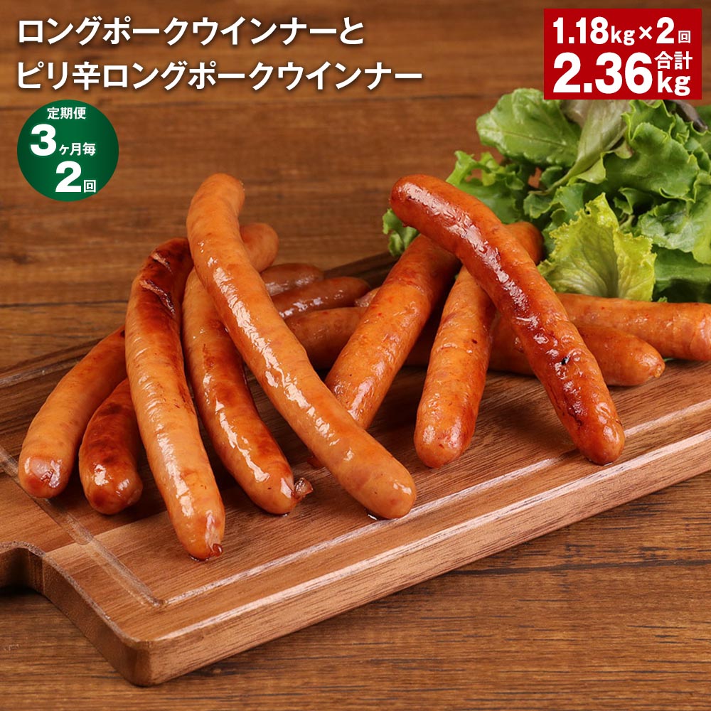 JAS特級荒挽きロングポークウインナーとJAS上級ピリ辛ウインナーの少量パックで使いっきりサイズをセットにしました。【ふるさと納税】【定期便】【3ヶ月毎2回】ロングポークウインナーとピリ辛ロングポークウインナー 計2360g(1180g×2回) 各4個 豚肉 肉 熊本県 菊池市 送料無料《お申し込みの翌月から出荷》