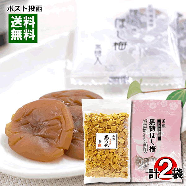 干し梅 個包装 和歌山 種抜き 甘い まろやか ドライフルーツ 和菓子 おつまみ おやつ おかき 米菓 国産米 醤油味国産 紀州南高梅 黒糖ほし梅 干し梅 種ぬき 60g&国産手焼きあられ 都小町 90g 詰め合わせセット【メール便送料無料】
