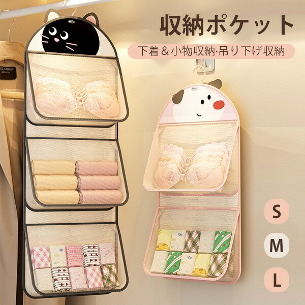 ネコ柄&犬柄が可愛い♪クローゼットの隙間に吊るして下着や靴下をスッキリ収納!大容量&中身が見えるデザインで整理整頓も簡単。S/M/Lの3サイズ展開で使い勝手抜群!収納ポケット ハンガー式 アニマル柄 吊り下げ収納 ウォールポケット 下着 靴下 ブラ ショーツ ブラジャー収納 ネコ柄 犬柄 大容量 中身可視 可愛い 衣類収納 ハンガーラック 隙間収納 仕切り S/M/Lサイズ クローゼット 整理整頓 インテリア k3760m4m4m3