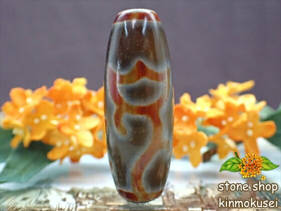 天然石 メノウ カーネリアン【チベット紅玉髄天珠】水蓮花天珠41×14mm