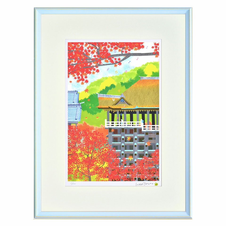 ★ 即納 送料無料 熨斗・ラッピング無料 額外寸58.5x76.5cm 絵画 美術品 作品 タブロー アート アートパネル インテリア フレーム 壁掛け 玄関 リビング 雑貨 人気版画 はりたつお 「京都秋の清水寺」 ジークレー版画 ジクレー 額入り 風景画 清水の舞台 紅葉 観光名所 空色帽子まーちゃん 大全紙 SALE