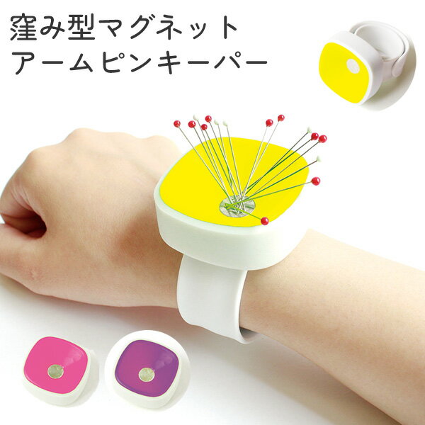 ■素材:ポリスチレン ■サイズ:約W4.8×H4.8cm、腕に巻く部分/約長さ25×高さ2.5cm、厚み0.2cm 窪み型なので、針先を下に向けて針を保管できます。 長さ約25cmあるバンドで、腕やミシンに直接巻き付けて固定することができます! 付け外しもしやすく、コンパクトに収納可能!NI 窪み型マグネットアームピンキーパー くぼみ型マグネットアームピンキーパー アームキーパー 針置き 用品 ミシン