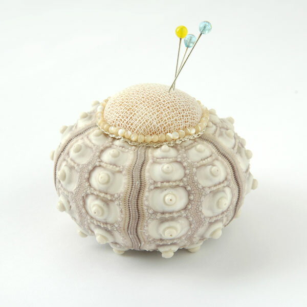 送料無料 ラッピングOK 海の底でひっそりと生きているウニの仲間たちは、見た目も地味で、ときにグロテスク。 しかしどうでしょう。刺の衣を脱ぎ捨てると、自然が作り出したとは思えない、美しい紋様が姿を現すのです。 結城伸子さんの「王冠の針山」は、刺を外した本物のウニ殻に、貝のビーズと銀の刺繍糸、アンティークレースを組み合わせ、まるで王冠のようにきらびやかで上品な針山に仕上げられています。 針の錆び止めに、綿の中に羊の原毛が入れられています。 見るほどに不思議なウニ殻は豪華な王冠のよう。 レース模様の有無、サイズや色合いはさまざま。 色やサイズは時期により異なります。 裏面。骨董のような深い存在感があります。 ブックレットに貼られたカシパンウニの実物。 専用ギフトボックス入りなので、プレゼントにも最適です。 サイズ 約 直径5~6 高さ4~4.5 cm 素材 ウニの殻、貝のビーズ、アンティークレース 針山の中綿:羊の原毛 納期 最短3営業日前後発送 ・お振込の場合は、お支払い後の発送となります その他 ・こちらの商品はパッケージされた状態で当店に入荷する為、色やサイズ、レース模様の有無や形はお選び頂くことはできません。 ・天然素材のため、大きさや色合い、紋様には個体差があります。複数購入の場合、大きさにかなり差が出る場合もございます。 ・蛇腹型ブックレットには「カシパンウニ」殻の実物が貼られています。 ・まち針5本付き(色は時期により異なります)