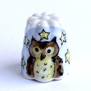 バイエルンの老舗窯が描くハンドペイント・指ぬき/ドイツ製 シンブル オウル Lindner リンドナー ソーイング 裁縫道具 指貫 インテリア 雑貨 コレクション メモリアル 記念品 動物 鳥 梟