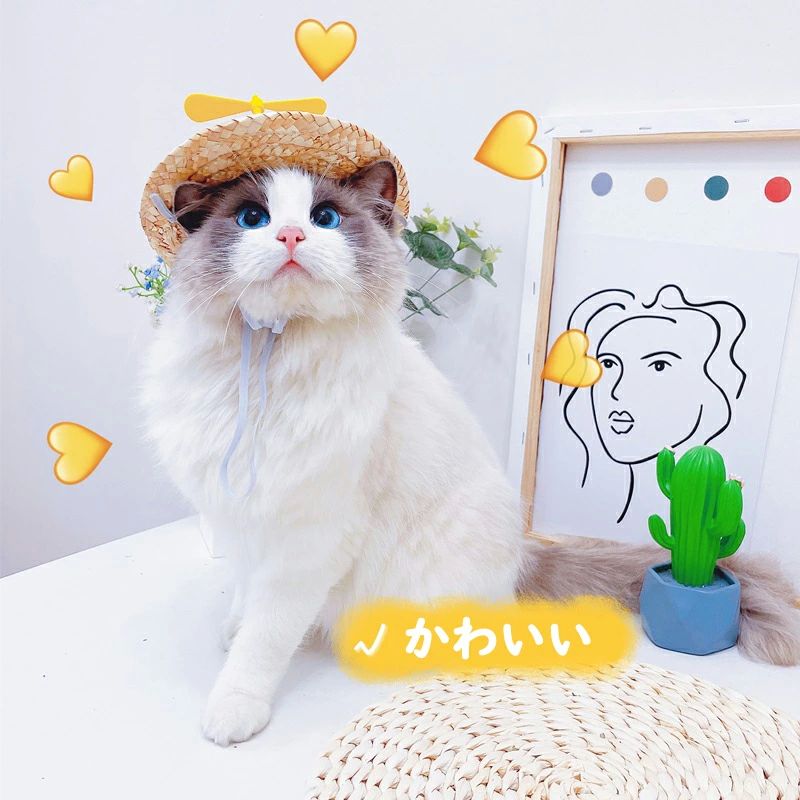 ご愛犬や愛猫などに最適なプレゼントです。犬 帽子 麦わら帽子 ハット猫 キャップ 竹とんぼ ムギワラ 春夏 犬猫用かぶりもの 小型犬中型犬 小物 夏バテ防止 日除 お出かけ