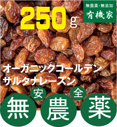 無添加ドライレーズン無添加ドライレーズン250g ★ゴールデン・サルタナレーズン★有機JAS(無農薬・無添加)★トルコ産★ノンオイル★ネコポス便送料無料・1個です。