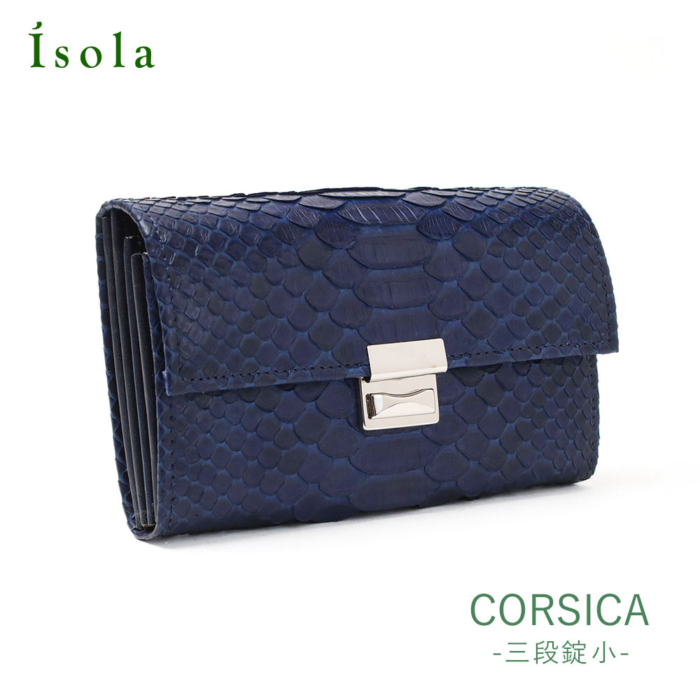 小さくてもしっかり入る。ベストセラーのギャルソン型がコンパクトに!【 isola公式 】 財布 ギャルソン コンパクト ミニ財布 蛇革 レディース 三段錠小 本革 日本製 isola アイソラ 藍 コルシカ 2009