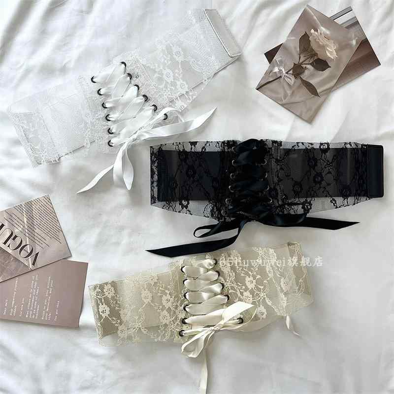 【予約販売5~12営業日での発送】コルセット ベルト ウエストマーク レディース おしゃれ エレガント 装飾 普段使い フォーマル レース シフォン バックル シングルループ 黒 白 クリーム色