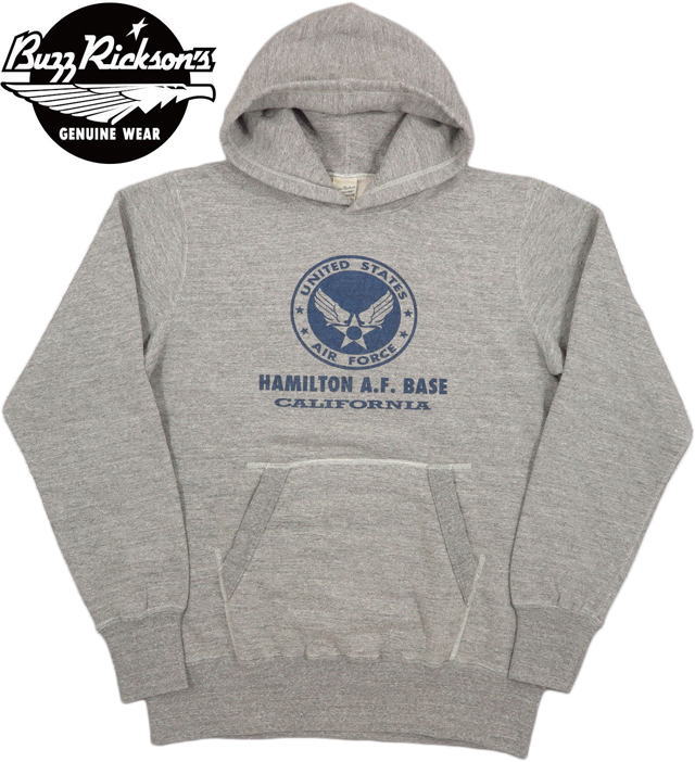 上質な素材感と着込むほどに肌に馴染む着心地の良さが魅力★バズリクソンズのプリントパーカー。BUZZ RICKSON'S/バズリクソンズ SWEAT PARKA “HAMILTON A.F. BASE” プリント パーカー/フーディ-/スウェットパーカ H.GRAY(ヘザーグレー)/Lot No. BR69068