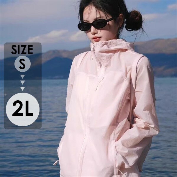 S-2L UVカットパーカー 日焼け対策 涼感 首元UVカットパーカー カーディガン 帽子付け UV パーカー フルフェイス 紫外線 母の日 プレゼント 夏アウター 日焼け対策 涼感 首元 ピンク S-2L