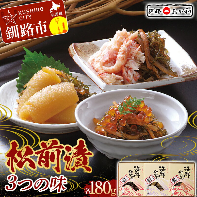 商品説明 名称 魚介類加工品 商品説明 するめいかと細切のがごめ昆布をベースに、数の子、釧路産の秋鮭いくら、たらばかにのむき身をたっぷり加えて漬け込みました。 いくら、かに、数の子にわかれていますので三種類の味をお楽しみいただけます。 内容量 ・いくら松前漬 ・本数の子松前漬 ・かに松前漬 各180g 産地 するめいか:国産 原材料名 パッケージに記載 賞味期限 発送日より冷蔵60日 アレルギー 小麦・かに・いか・いくら・大豆 発送期日 決済から7日以内に発送(お届け日の指定はできません) ※12/21(木)までの決済で年内発送いたします。 ※配送地域、交通事情等により、お届けが前後する場合がございます。あらかじめご了承ください。 保存方法 冷蔵 配送方法 冷蔵 提供事業者 株式会社 おが和北海道釧路市 ・ふるさと納税よくある質問はこちら ・寄附申込みのキャンセル、返礼品の変更・返品はできません。あらかじめご了承ください。【ふるさと納税】 釧路おが和 松前漬 3つの味 釧路市には色んなジャンルの返礼品がございます。※漁獲量や季節、在庫などの関係上、取り扱っていないジャンルもございます。ご了承ください。■海産物・水産物・海鮮・魚介類いくら イクラ 帆立 ほたて ホタテ 鮭 サケ さけ シャケ しゃけ 紅鮭 秋鮭 銀鮭 数の子 つぼ鯛 雲丹 ウニ うに 塩水うに 折うに 生うに 蟹 かに カニ ズワイガニ タラバガニ 毛蟹 つぶ コマイ 秋刀魚 さんま サンマ シシャモ ししゃも あさり 明太子 めんたいこ たらこ ほっき ホッキ 昆布 タコ 蛸■肉牛肉 牛カルビ 豚肉 豚バラ 豚カルビ 羊肉 ラム肉 鹿肉 シカ肉 ハンバーグ ジンギスカン サーロインステーキ リブロースステーキ しゃぶしゃぶ 阿寒モルト 阿寒ポーク 赤身 豚丼 バラスライス 焼肉■その他(加工品・スイーツ・名物など)鯖缶 さば缶 サバ缶 鰯缶 いわし缶 イワシ缶 水煮 味噌煮 味付 塩辛 干し帆立 鮭フレーク 鮭ほぐし 鮭とば さんまんま ドリア グラタン チーズテリーヌ アイスクレープ 煮魚 切り出し昆布 とろろ昆布 松前漬け カニ剥き身 豚まん ザンギ 釧路ぷちどーる プリン 定期便