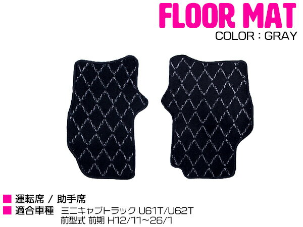 ミニキャブトラック U61T/U62T 前型式 前期 平成12年11月~平成26年1月フロアマット 専用設計 ミニキャブトラック U61T/U62T 前型式 前期 ダイヤ柄 運転席&助手席 2PCS グレー/灰色 【フロント フロアーマット ダイヤカット 運転席 助手席 車種専用 車 絨毯 ラグマット チェック柄 ひし形 ギンガムチェック】
