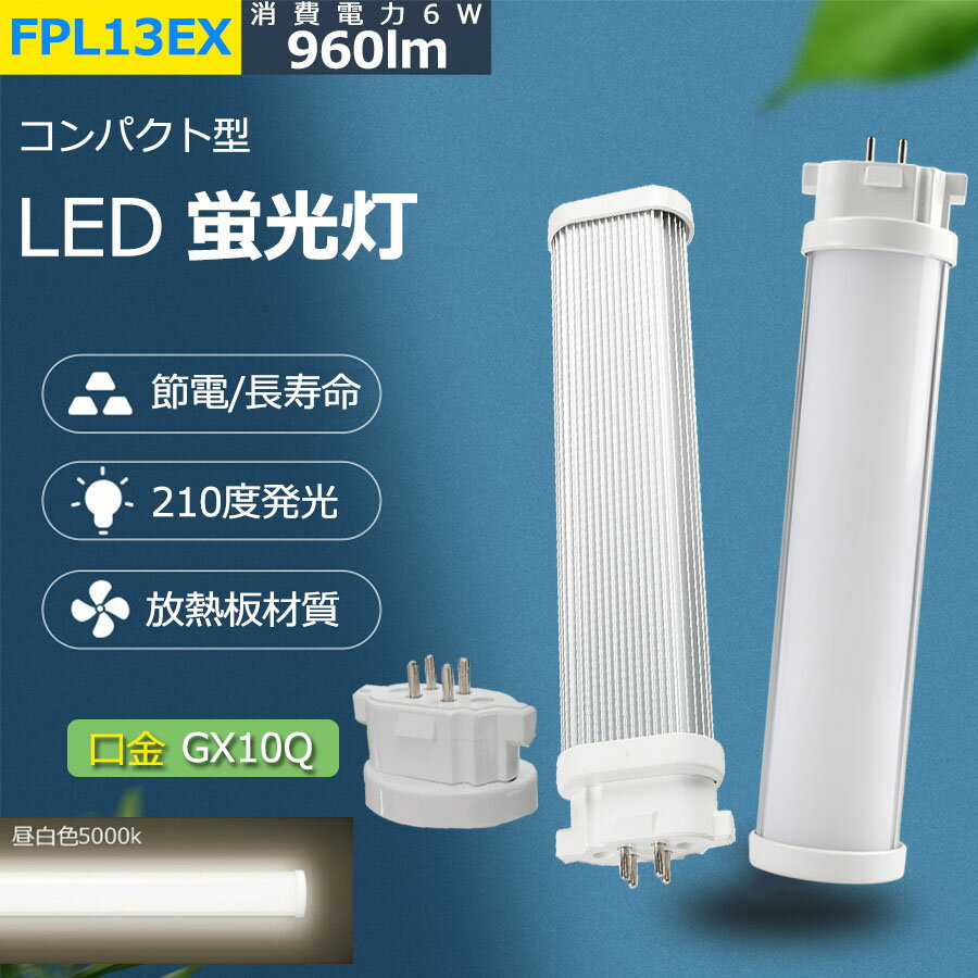 即納!LEDコンパクト形蛍光灯 FPL13EXW FPL13EX-W 白色4000K FPL13EX FPL13W 13W形 13W形相当 コンパクト形蛍光ランプ 長寿命50000H 広配光 エコ 防虫 超省エネタイプ 超高輝度タイプ【1年保証】LED蛍光灯 FPL13EX-W FPL13EXW 白色4000K FPL13形 LEDコンパクト蛍光灯 FPL13形LED蛍光灯 FPL13 LED LED化 LEDツイン蛍光灯 13形 LED ツイン1蛍光灯 LEDライト 照明 LED電球 店舗照明 施設照明 消費電力6W 全光束1200lm GX10Q口金 兼用 送料無料【配線工事必要】
