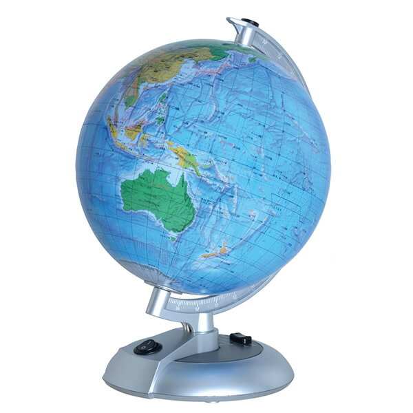 ・4,000を超える最新地理情報を教科書に準拠した表記方法で記載。 ・山の高さに応じた山岳隆起加工による立体構造。 ・独立国ごとに豊かな色彩で色分けされた行政型最新地図。 ・南北にも転回し見やすく使いやすいジャイロマティック構造。 数々の特徴を持ち、幅広い年齢層に適したご家庭向き地球儀です。プレス加工されたスチール製の円形架台は安定がよく、子午環と同じ金色に塗装されています。新聞やTVニュースの理解をより深めたり、海外旅行のアルバムをめくりながら旅行の思い出を振り返ったり、ご家族皆様でコミュニケーション・ツールとしてご活用、お楽しみください。ご入学のプレゼントとしても最適です。高さ41cm 重量2,5Kg【smtb-MS】「ワールドネイションシリーズ」山岳隆起の行政型。海底地形は陰影でリアルに表現。4000余りの最新地理データが教科書に準拠した表記で記載され、お子様にも最適。