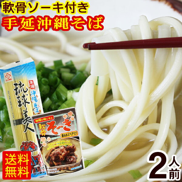 完全手延べ乾麺の沖縄そば(粉末スープ付き)2人前のお得なセットです。沖縄そば、柔らかな軟骨ソーキ(豚バラ肉)をセットにしました。手延べ沖縄そば 琉球美人 2人前(軟骨ソーキ165g付き) /乾麺 ポイント消化 【M便】