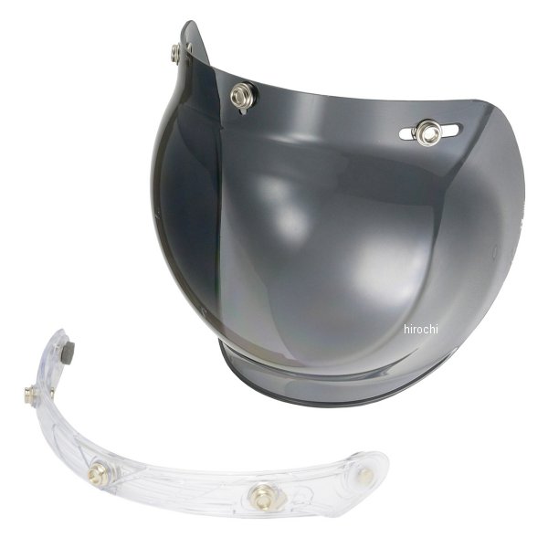開閉式バブルシールドです。 【 特徴 】 ■フリップアップベース一体型の為、別途コンバーターは必要ありません。 ■取り付け部分はアジャスター機能付きです。 ■3スナップ式シールドが装着できるものであればほとんどのヘルメットに装着可能です。 ■高品質のポリカーボネート素材を使用ているので、耐久性が高く長くご使用いただけます。 ■UV380加工で強い日差しからもしっかりガードしてくれます。 ■シールドスナップ部分には【DIN】の刻印入り。 【 カラー 】 ■フラッシュミラー 薄めのミラー加工が施されており、スモークほどの暗さはありませんので時間や天候を問わずご使用いただけます。ミラーの反射によって顔が見えにくくなるのも人気のポイントです。 【 商品内容 】 ■バブルシールド ■プロテクションラバー ■クッションスペーサー →カラー:クリアはこちら →カラー:ライトスモークはこちら ※ご注意※ ・ヘルメットは付属しません。 ・他社製ヘルメットへ装着の場合、仕様によっては装着ができない場合もございます。 ・フリップアップベースとシールドは分解できません。薄めのミラー加工が施されており、スモークほどの暗さはありませんので時間や天候を問わずご使用いただけます。ミラーの反射によって顔が見えにくくなるのも人気のポイントです。