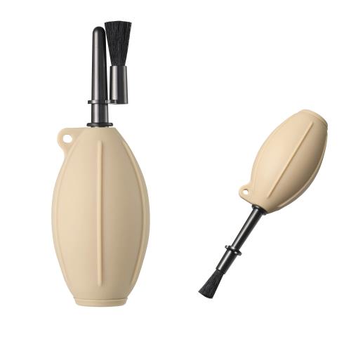 レンズやカメラ、OA機器などのクリーニングに適したシリコン製ブロアー。ノズルの先端にブラシを装着可能。 ポンプとブラシの両機能でゴミを取り除くことが可能。細部に入ったゴミをブラシでかき出しながら、ブロアーで吹き払えます。 ブロアー本体に立体的なライン形状を施しており、ポンピング時に滑りにくくしっかりと握ることができます。横にして置いた時の転がりの抑制にもなります。 テーブルの上などに立てて置きやすい幅広のスタンド形状。ノズルの付け根部分には持ち運びに便利なストラップホールつき。 サイズ全長 : 約146mm、直径 : 約53mm、重量 : 約50g材質本体 : シリコンゴム、ノズル : PP、ブラシ : ナイロン