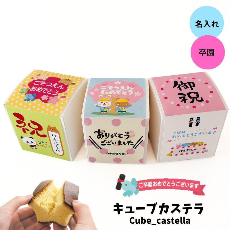 卒園記念品に | ちょどいい | 手のひらサイズ | 四角い | 小さな | カステラ |【卒園記念品】 名入れ プチギフト キューブカステラ プレーン 1個【三源庵】卒業 記念品 名入れ 卒業記念名入れキューブカステラ 卒業式 カステラ スイーツ 大量 キューブカステラ お菓子 個性 小分け かわいい おしゃれ ネット限定 景品 個包装カステラ 贈り物 オリジナル