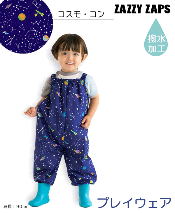 80-100cmに対応! 雨の日 水遊び はっ水加工 巾着付き20%オフ ベビープレイウェイ オーバーオール レインパンツ コスモ 宇宙 コン ネイビー ポーチ付き はっ水加工 水遊び 雨の日 ザジーザップス ユアーズアーミーワールド 1点のみクロネコゆうパケット発送OK!