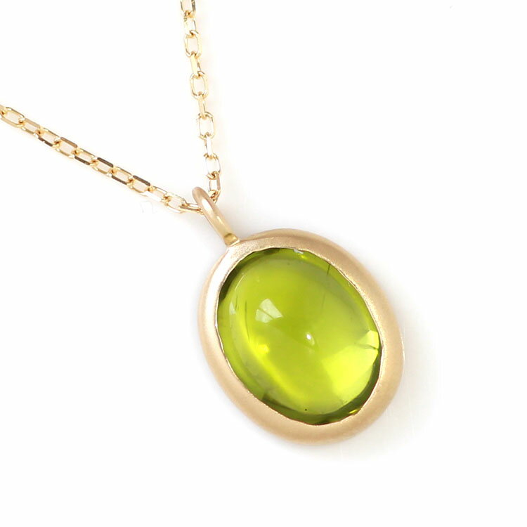 天然石 緑色 グリーン 宝石 カボションカット 大粒 ペンダント 8月の誕生石 シンプル おしゃれ ジュエリー ブランド カフェオリ cfoペリドット K10 イエローゴールド ネックレス・シルフ 10金 10K 日本製