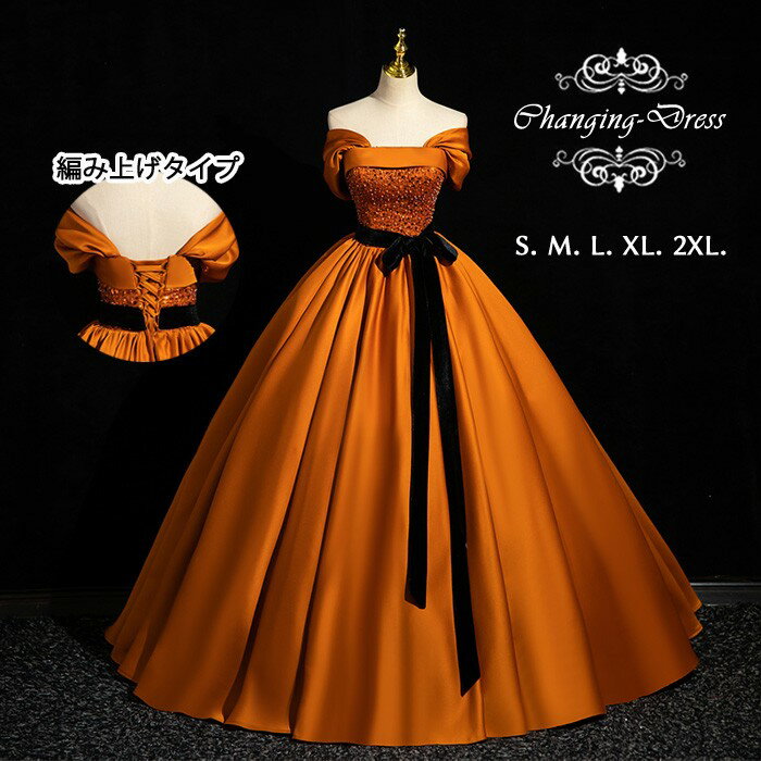 S-3L エレガントなブライズメイドドレスは、ピアノ発表会や結婚式などのフォーマルな場に最適。体型カバー効果も抜群です。カラードレス お色直し オレンジ 結婚式 ロングドレス 演奏会 袖あり 半袖付き オフショルダー パーティードレス フォト婚 ピアノ発表会 イブニングドレス バックレスドレス 編み上げ プリンセスライン 透け感 イベント 演出 舞台 ステージ 衣装 S-2XL