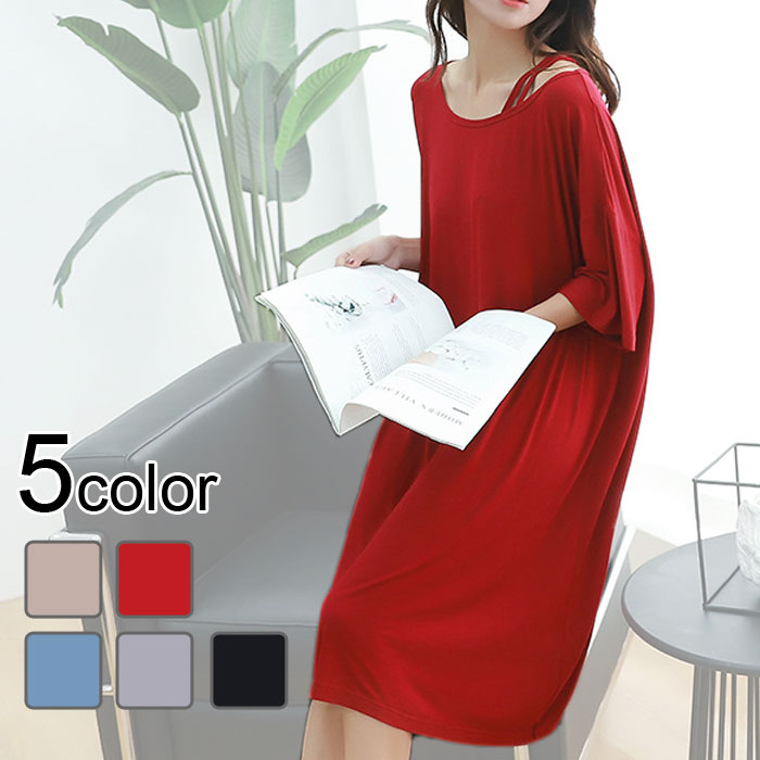 商品到着後レビューを書いて10%OFFクーポンGET!! 【メール便で送料無料】 ボディーラインをキレイに見せるのは、目線を上に集めるネックのダブルループデザインの賜物。 マタニティとしても◎な、ゆるテロデザイン。 5分袖丈で、気になる二の腕もカバー。 ゆったりドルマンデザインのTシャツワンピース ロングTシャツ チュニックTシャツ ゆるTシャツ ストレス感なく、ゆったりしていてとても動きやすいです。さらっとした肌触りで、涼しく感じます。 着丈は膝のちょっと下あたりに来ます。袖丈はしっかり肘を隠せる位置です。 首元のデザインが可愛くて購入しました。肌触りよくて、とても着やすいです。 【メール便で送料無料】【レビューを書いて10%OFFクーポンGET】Tシャツ ワンピース ロングTシャツ ロンT Tシャツワンピース マタニティ ロング トップス パジャマ ロング丈 膝丈 薄手 涼しい 冷感 ボートネック ゆったり 大きいサイズ 五分袖 無地 春夏 夏用 レディース カットソー ワンピース チュニック ワンピ ストレッチ 体型カバー ドルマン オーバーサイズ オフショルダー 肩出し 妊婦 授乳服 入院 入院着 入院服 出産 快眠 快適 とろみ ひんやり 涼感 半袖 七分袖 7分袖 5分袖 リラックス ルームウエア 部屋着 普段着 寝巻 ひざ丈 モダール レーヨン 夏 夏服 大人 30代 40代 50代テロ感のある薄手のストレッチレーヨン素材ゆったりドルマンシルエットロング丈Tシャツワンピース 【メール便で送料無料】 テロ感のある薄手のストレッチレーヨン素材で、シルエットも綺麗。着痩せ効果抜群♪ 吸汗性の高い素材で、汗をかいてもべたつかない。 柔らかくあるひんやりとした肌触りで、暑苦しい夏に最適◎ 洗濯をしても毛玉が出来にくい、ストレッチレーヨン素材。 首元をすっきり見せ、鎖骨をきれいに見せるボートネックデザイン。 ゆったりとしたロング丈で体系カバーもOK!マタニティとしても◎ 5分袖丈で、気になる二の腕もカバー。 ルームウェアやフィットネスウェアやヨガウェアとしても。 ゆったりドルマンデザインのTシャツワンピース ロングTシャツ チュニックTシャツ ゆるTシャツ 【メール便(ネコポス便)で送料無料】※代引き決済は対象外※ ☆レビューを書いて10%OFFクーポンGET☆ ▼サイズ・カラー・素材 【サイズ】※すべて平置き採寸です。若干の差はご了承下さい。 1サイズ(M~L相当) 着丈:約94cmバスト:約140cm 肩幅:約42cm袖丈:約19cm袖口周り:約34cm裾周り:約145cm 【カラー】 ワインレッド ベージュ ブラック ブルー ダークグレー 【素材】 レーヨン:95% スパンデックス:5% 伸縮性:大いにあり 透け感:なし 生地の厚さ:薄手 【着用モデルサイズ】 身長:164cm/体重:50kg 【メール便で送料無料】【レビューを書いて10%OFFクーポンGET】Tシャツ ワンピース ロングTシャツ ロンT Tシャツワンピース マタニティ ロング トップス パジャマ ロング丈 膝丈 薄手 涼しい 冷感 ボートネック ゆったり 大きいサイズ 五分袖 無地 春夏 夏用 レディース カットソー ワンピース チュニック ワンピ ストレッチ 体型カバー ドルマン オーバーサイズ オフショルダー 肩出し 妊婦 授乳服 入院 入院着 入院服 出産 快眠 快適 とろみ ひんやり 涼感 半袖 七分袖 7分袖 5分袖 リラックス ルームウエア 部屋着 普段着 寝巻 ひざ丈 モダール レーヨン 夏 夏服 大人 30代 40代 50代