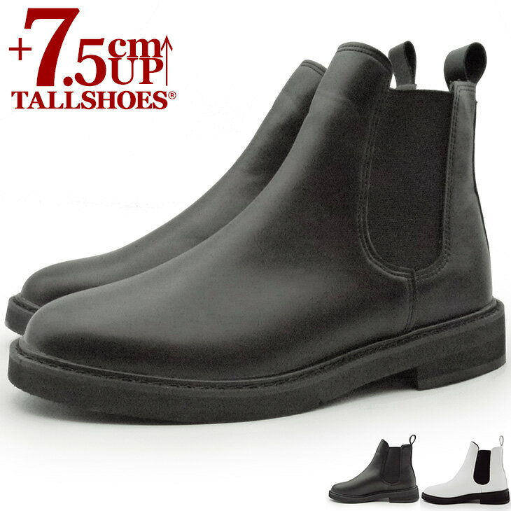 送料無料 | 交換無料7.5cmUPのTALLSHOESサイドゴアブーツ。合成皮革と軽量ソールで快適な履き心地。ブラックカラーが20代~50代男性に好まれる洗練されたデザインです。シークレットシューズ 厚底 トールシューズ メンズ シークレットブーツ 厚底靴 7.5cm 背が高くなる靴 紳士靴 身長アップ ヒールアップシューズ メンズ靴 ブーツ カジュアル tallshoes 底上 おしゃれ 上底 サイドゴア インヒール ショートブーツ カジュアル 厚底ブーツ